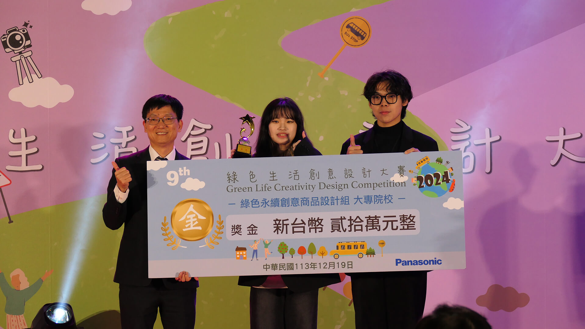由台灣Panasonic集團主辦、崑山科大執行的第九屆「綠色生活創意設計大賽」於12月19日假台中世界貿易中心舉行決賽及頒獎典禮。本屆大賽吸引來自30所公私立大專院校及27所高中職學校,計296支隊伍參賽,超過千名學生積極投入,更有來自越南、日本、馬來西亞等國的學生也參與競爭。經評審初審後,最終有52隊成功入圍決賽,共同爭奪總獎金達百萬的豐厚獎勵,賽事相當激烈。