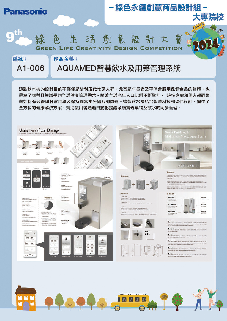 | 最佳潛力獎 | A1-006 | 明志科技大學 | AQUAMED 智慧飲水與用藥管理系統 | 許定洋 | 徐意菲 高子玄 |