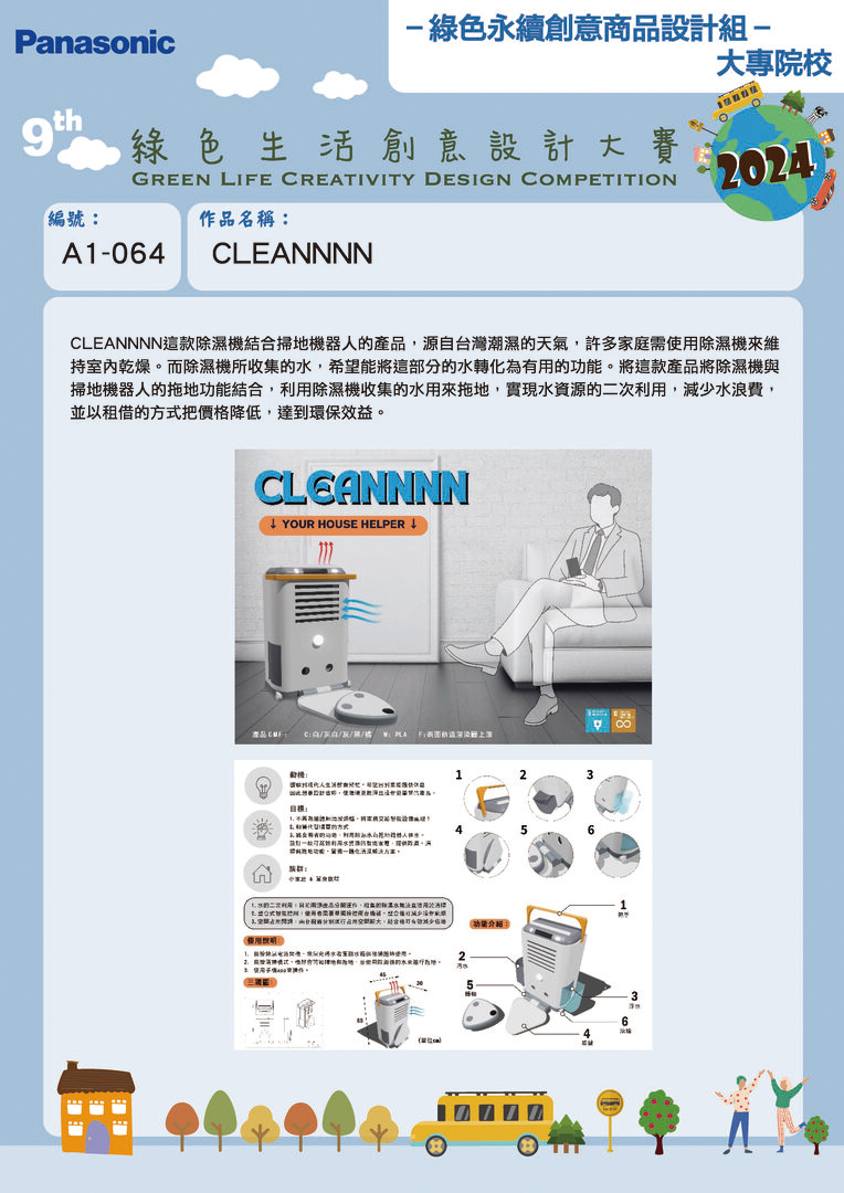| 最佳潛力獎 | A1-064 | 明志科技大學 | CLEANNNN | 楊俊明 | 賴偲云 |