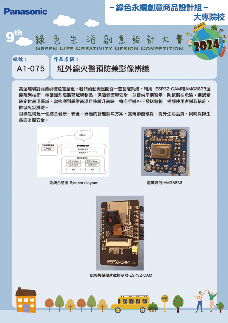 | 最佳創意獎 | A1-075 | 崑山科技大學 | 紅外線火警預防兼影像辨識 | 張慶寶 | 蔡右盛 王榆凱 李豐宇 |