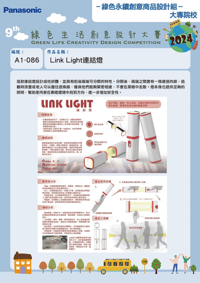 佳作 | A1-086 | 明志科技大學 | Link Light 連結燈 | 李鍇朮 | 陳佳儀 |