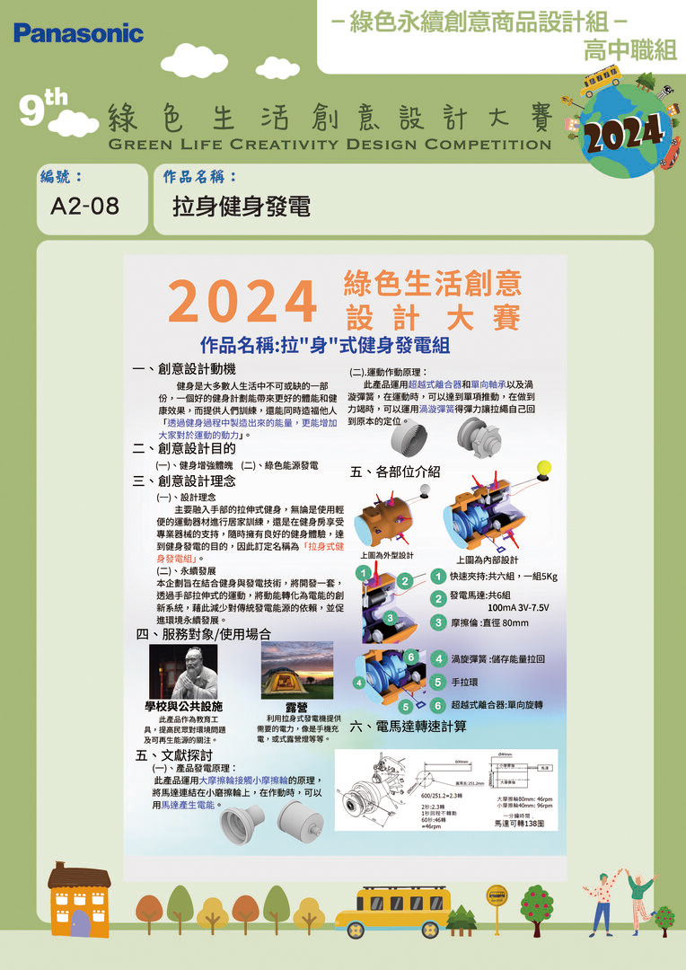 銅獎 | A2-08 | 永靖高工 | 拉身式健身發電組 | 楊秦富 林茂宏 陳彥儒 邱右瑄 | 蘇宗和 陳映涵 李子承 黃慈堯 李芷誼 林塬鑫 郭芷菱 吳昱槑 李千佩 江佳玲 徐凡燁 |