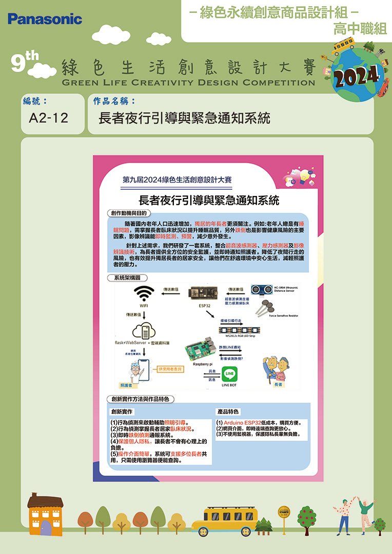 佳作 | A2-12 | 高雄市立高雄高工 | 長者夜行引導與緊急通知系統 | 王志偉 | 藥 寅 陳怡如 龔可依 林柏翰 |