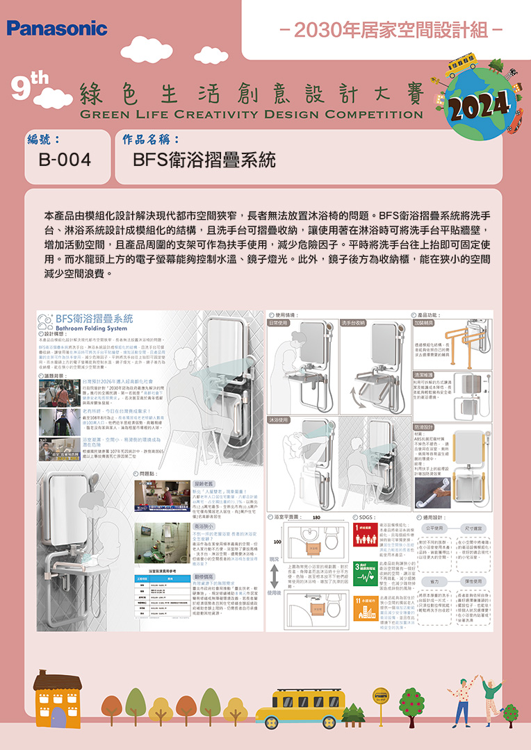 佳作 | B-004 | 國立臺北教育大學 | BFS 衛浴摺疊系統 | 李鍇朮 | 劉佳宜 |