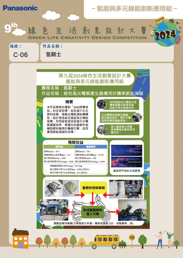 佳作 | C-06 | 崑山科技大學 | 綠色風光電解產氫器應用於機車節能減碳 | 邱韋丞 | 張修維 白峻維 林雉庭 彭明輝 |