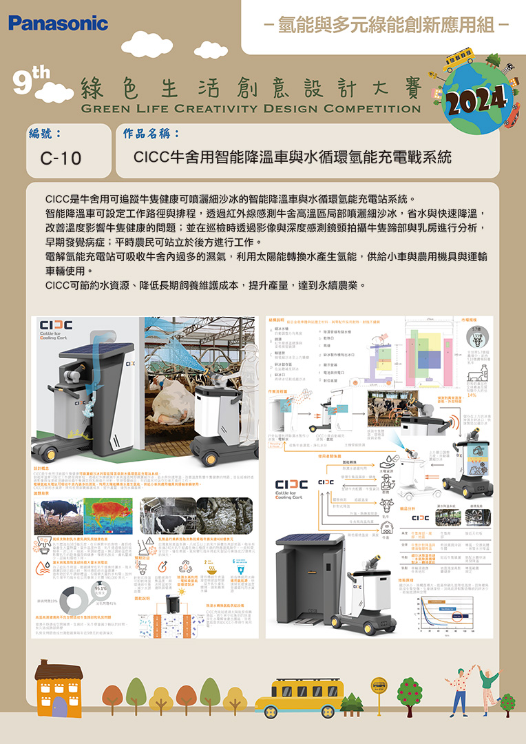 佳作 | C-10 | 國立臺北教育大學 | CICC 牛舍用智能降溫車與水循環氫能充電站系統 | 李鍇朮 | 林欣妤 |