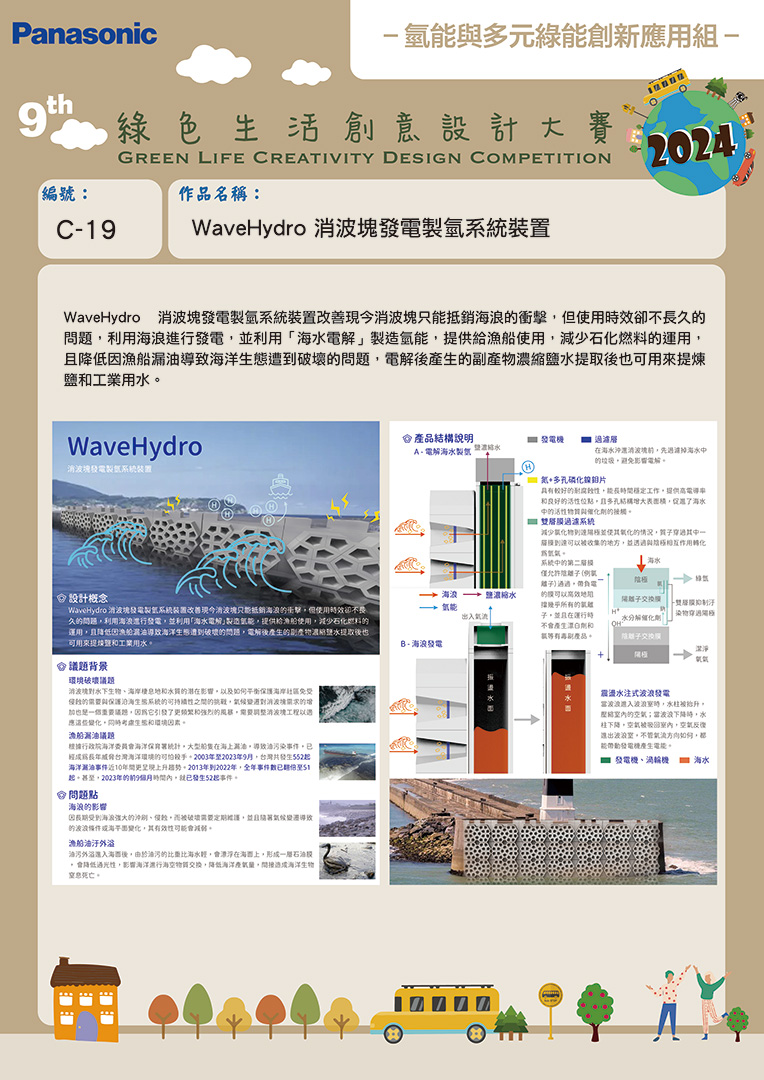 銅獎 | C-19 | 明志科技大學 | WaveHydro 消波塊發電製氫系統裝置 | 李鍇朮 | 林于禾 莊筑安 李旨昀 |